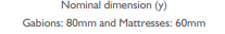 The dimension between the twists is a nominal 80mm for gabions and 60mm for mattresses.